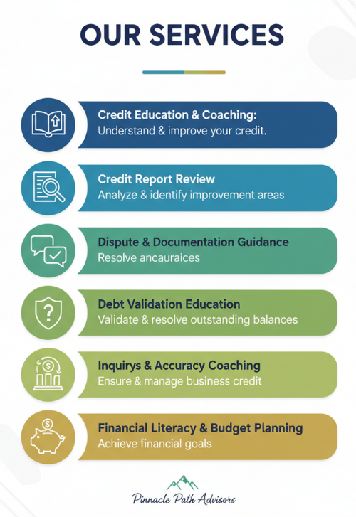 Pinnacle Path Advisors offers a comprehensive range of services to help you navigate the complexities of credit and financial management:
